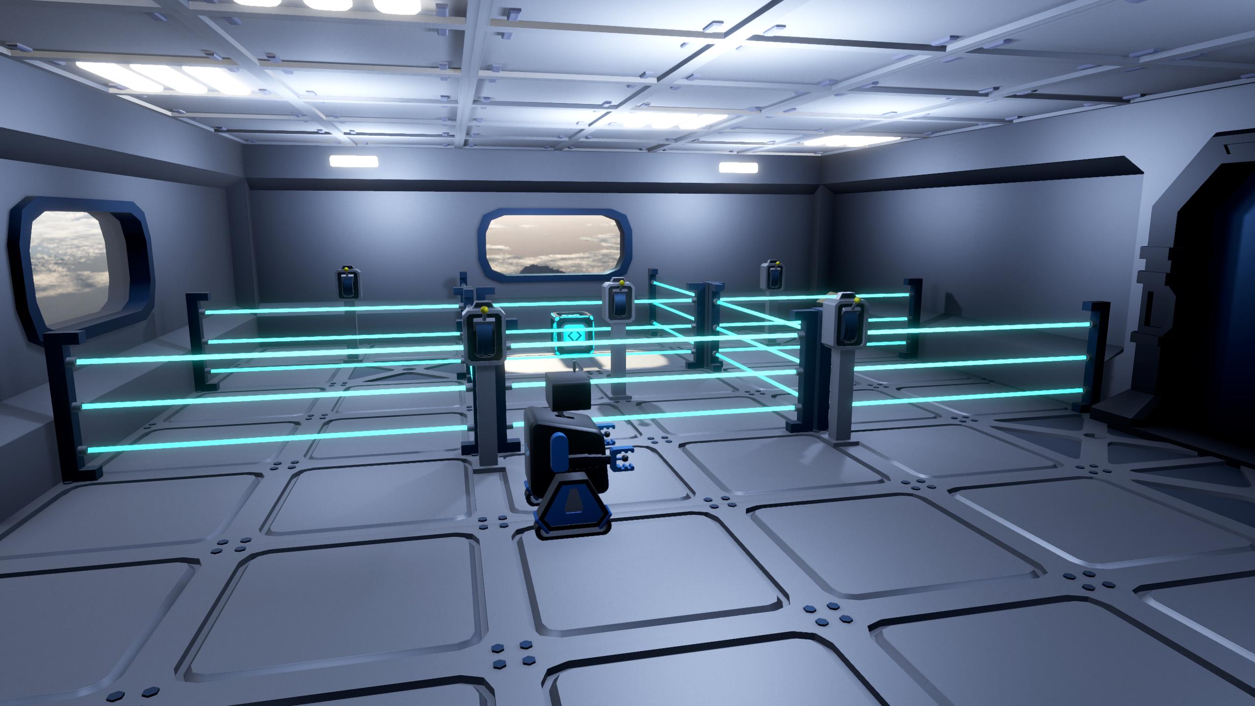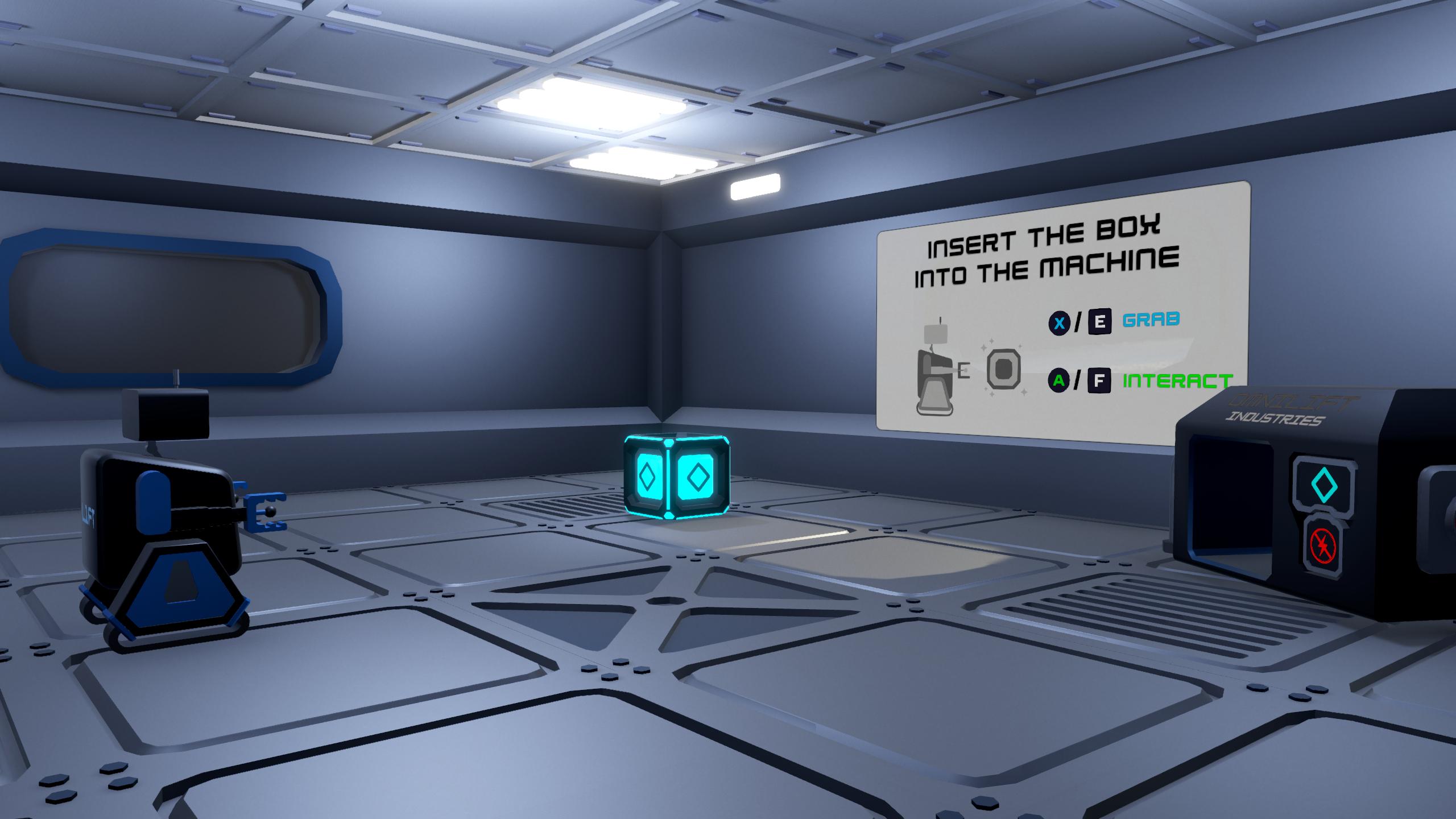 The game features a little robot that can grab and interact with the environment in order to solve puzzle rooms as fast as possible to obtain the best score.